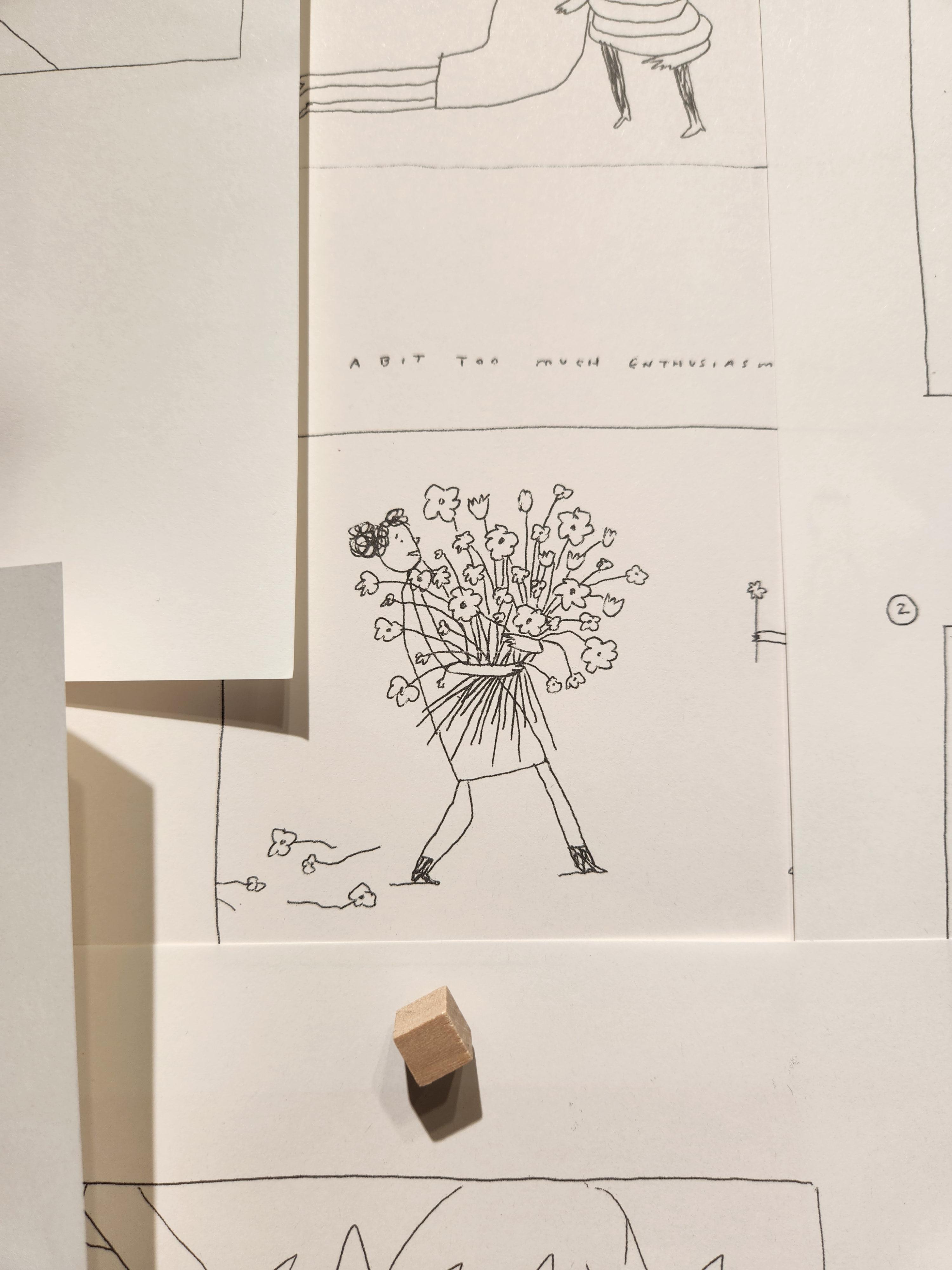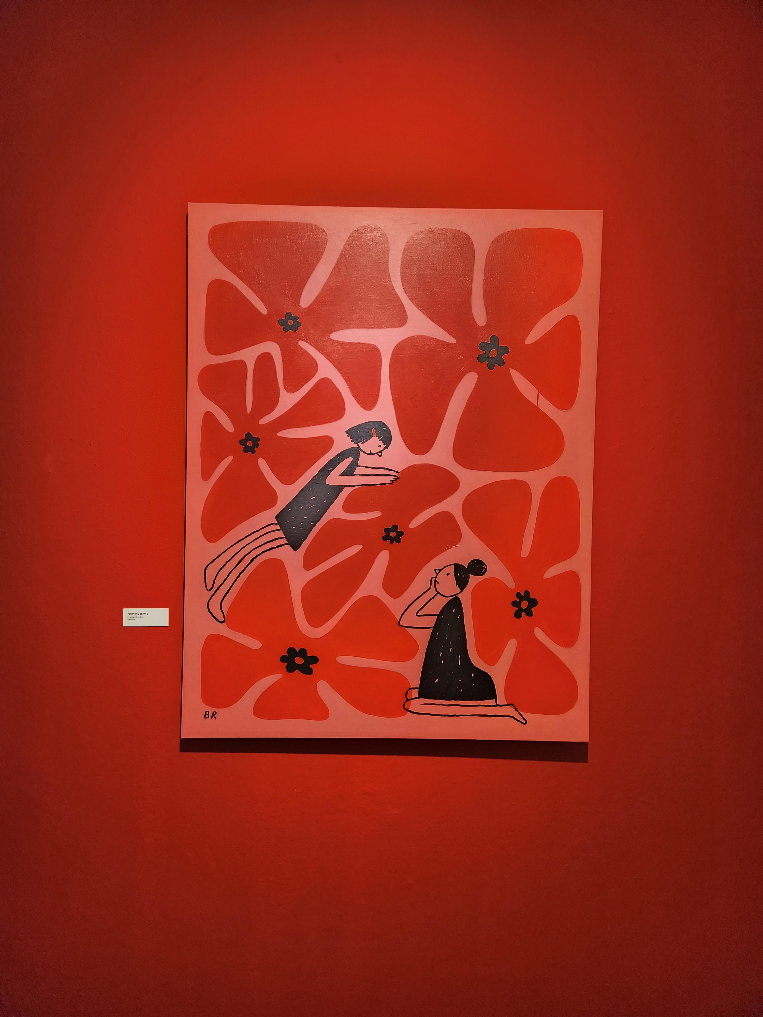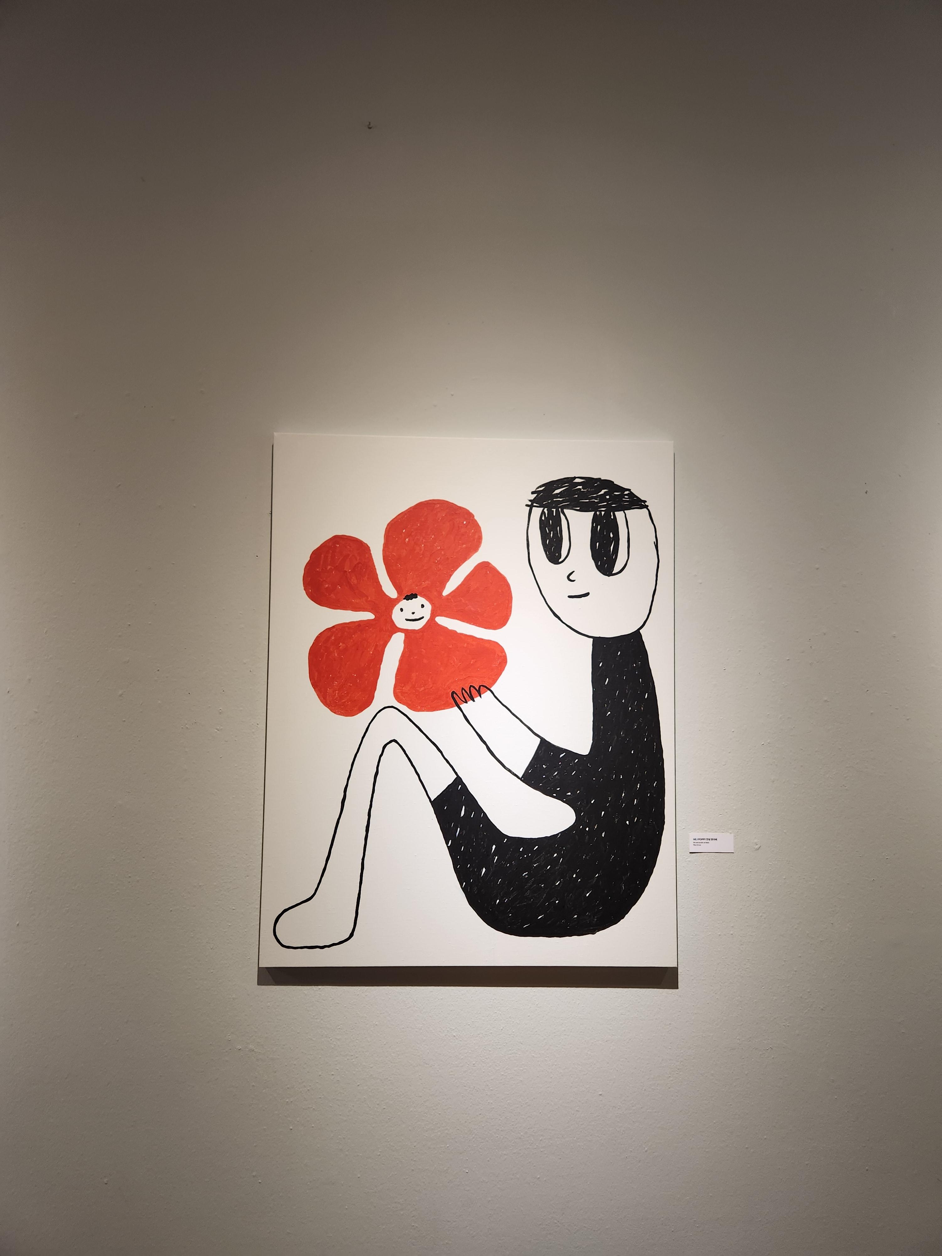 꽃양귀비꽃이 유난히도 많았다고해요. 꽃양귀비 꽃의 꽃말은 위로인데 위로는 사랑에서 아주 중요한 감정을 나타내기에 이를 표현하였다고해요. 드로잉이 단순하지만 의미를 모두 가지고 있는~ !!