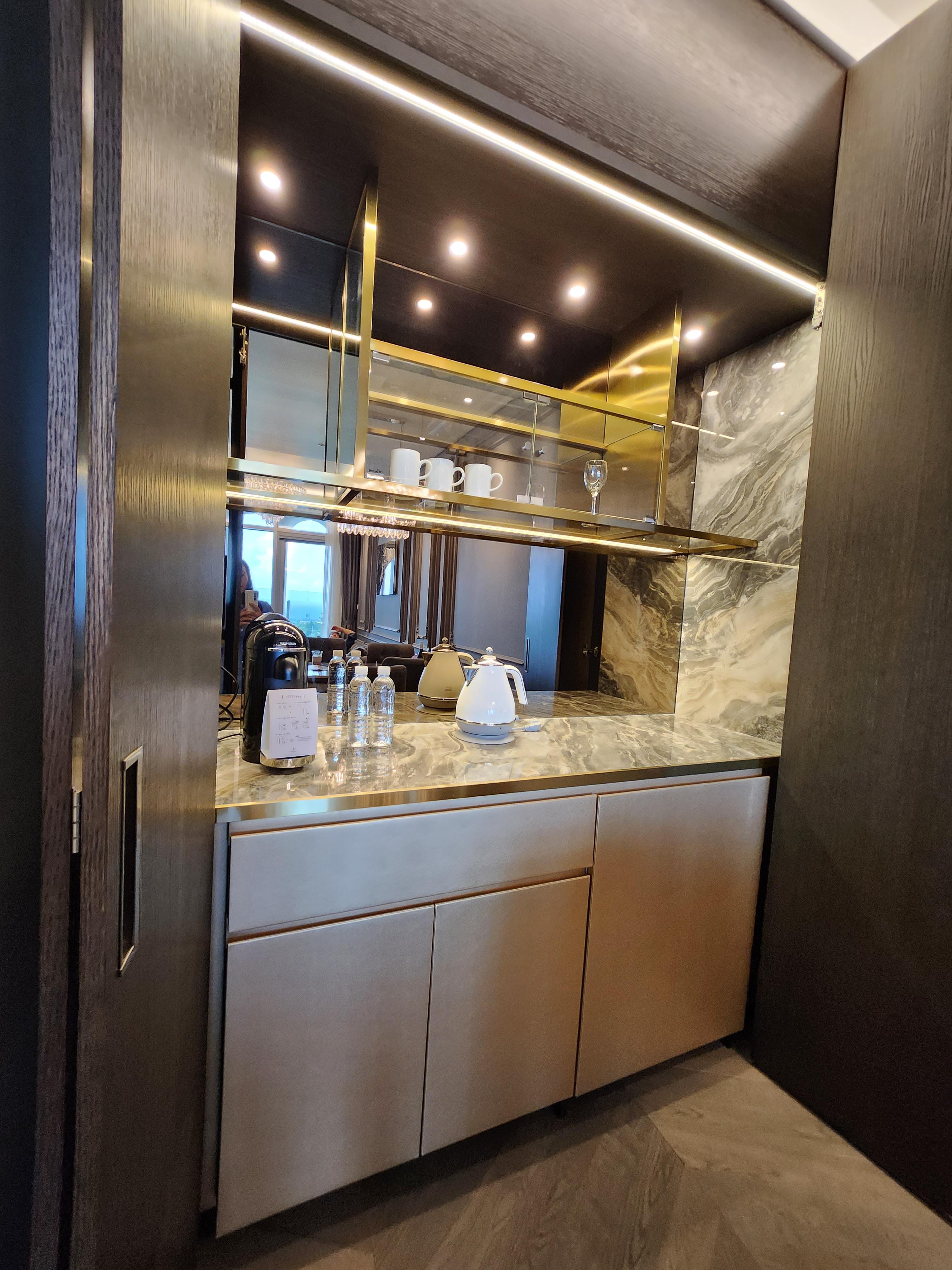 룸 미니바에는 생수 6병 무료제공! 네스프레소 커피머신과 커피가 있고