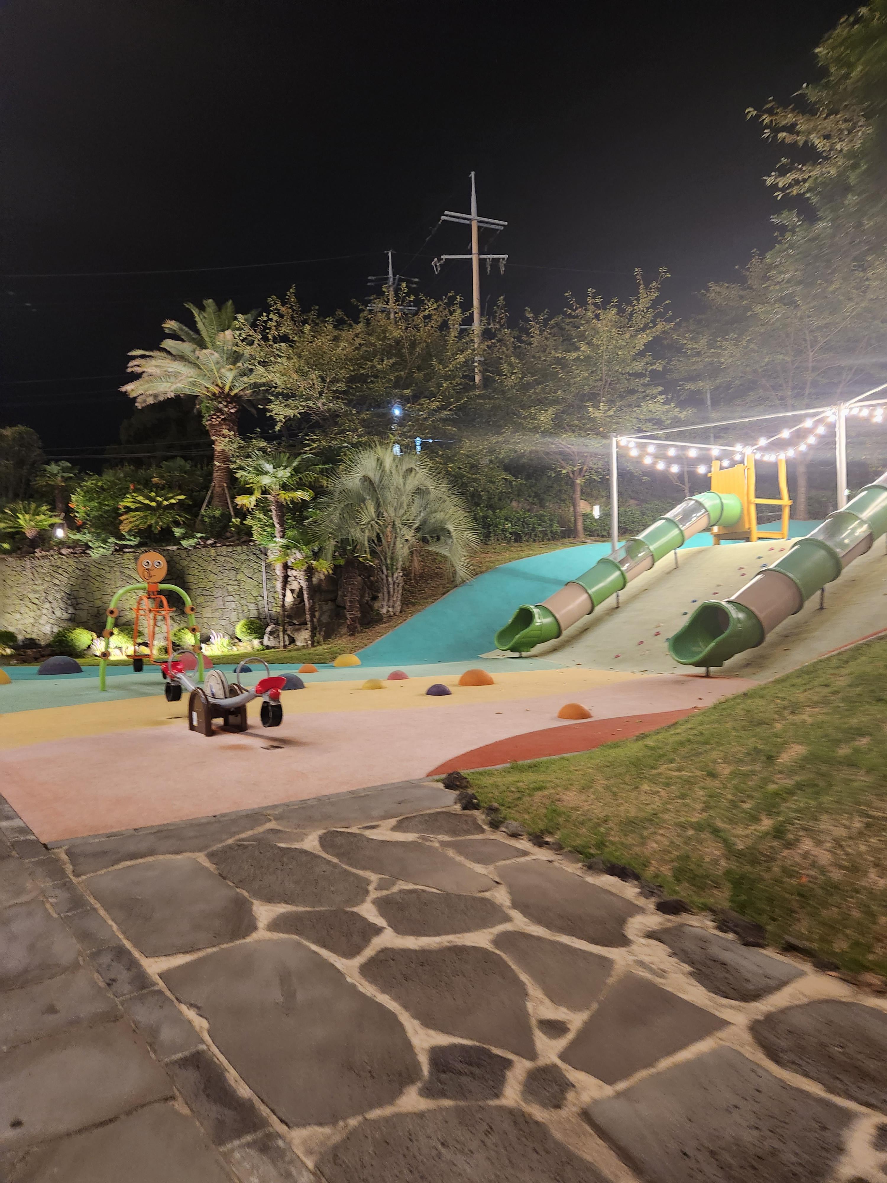카바나 이용이 가능했지만 방문했던 날 비가 와서 사용하지 못하고 온수풀에서 수영하고 사우나를 갔어요.