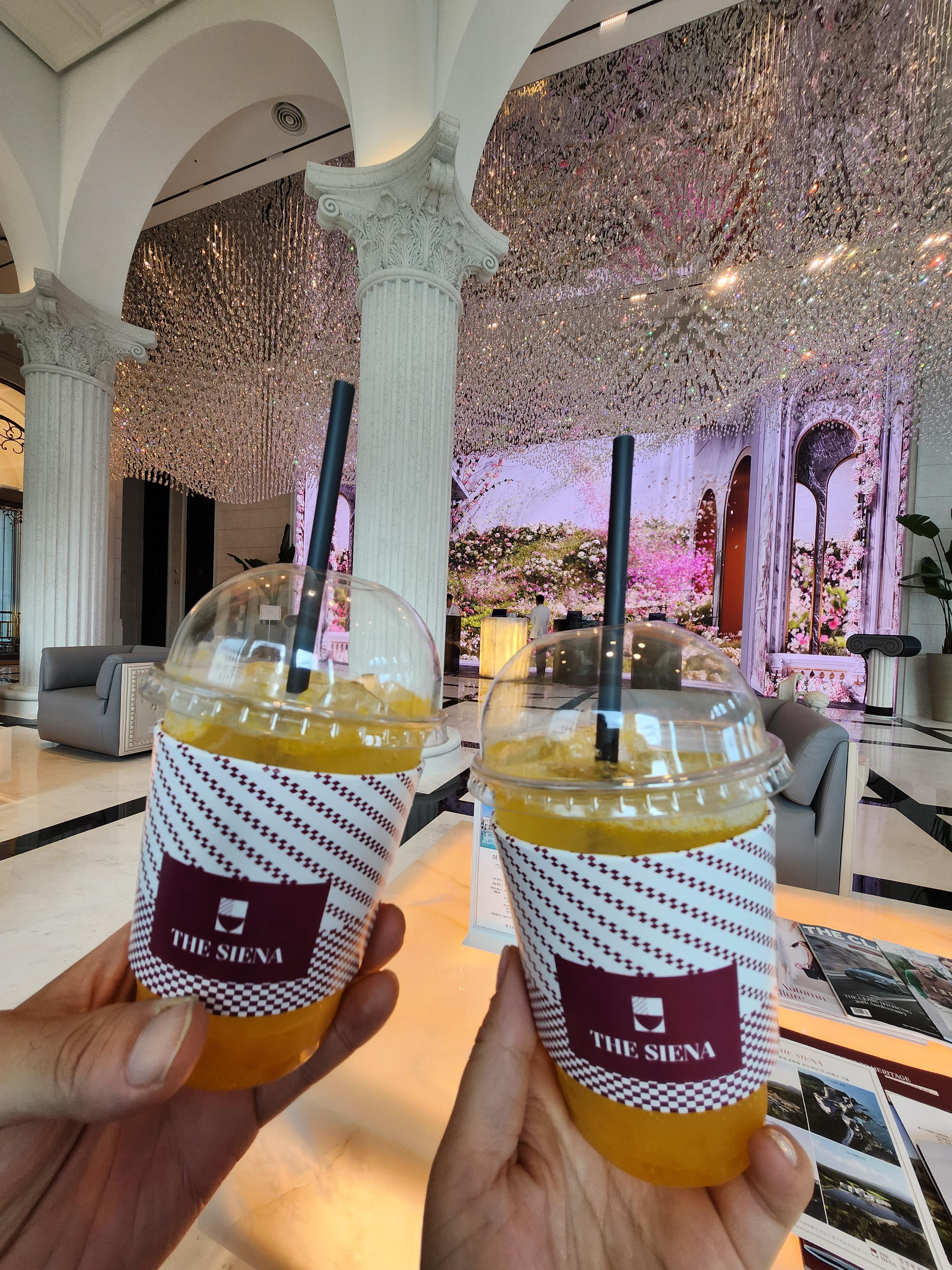 지하 주차장 주차를 하고 인포에서 체크인 할 동안 라운지바에서 웰컴드링크를 주셨어요.