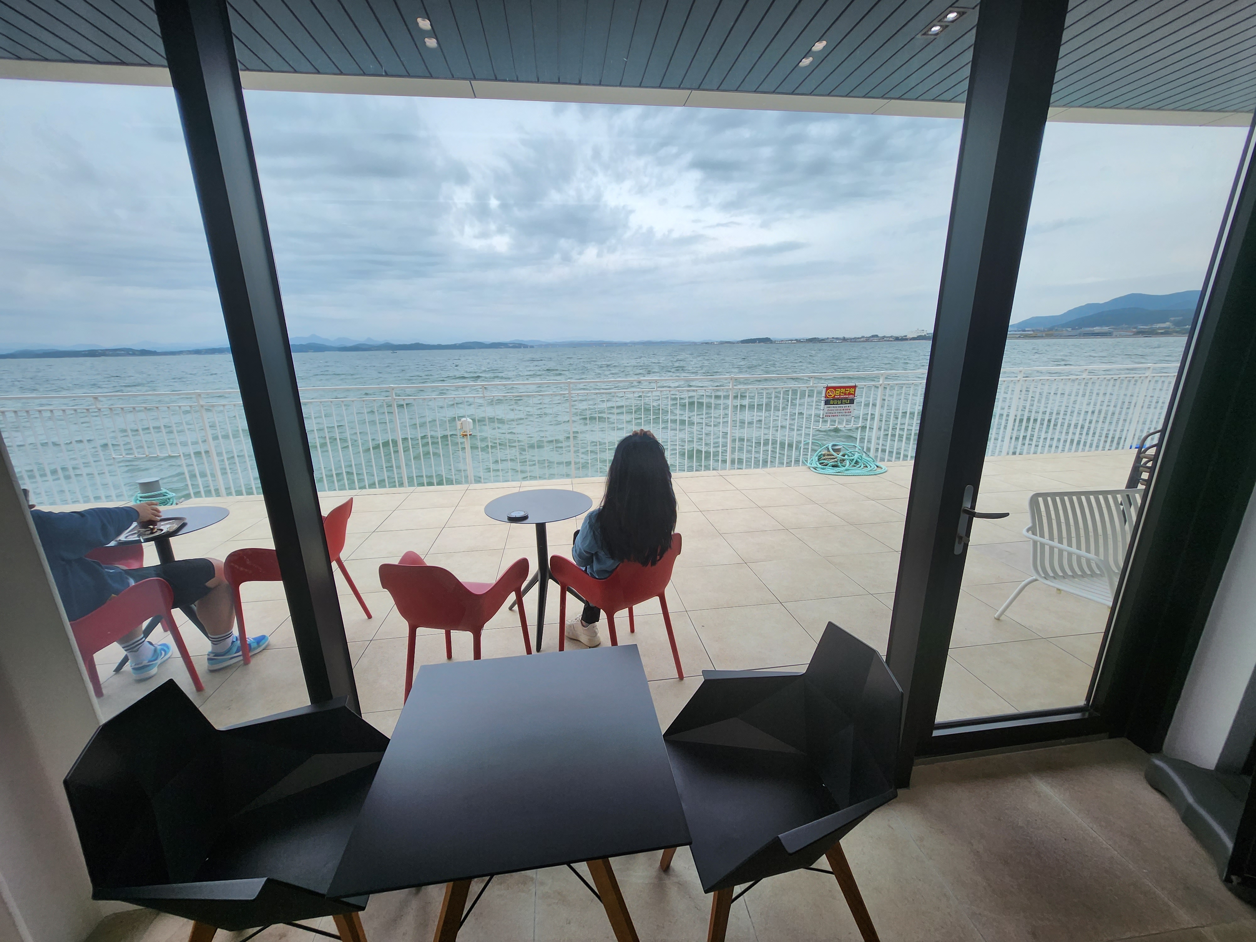 그래도 넘실거리는 파도위에 카페에서 차한잔의 여유! 너무 너무 낭만적이다. 매일 와도 매일 다른 분위기! 또 와야지!