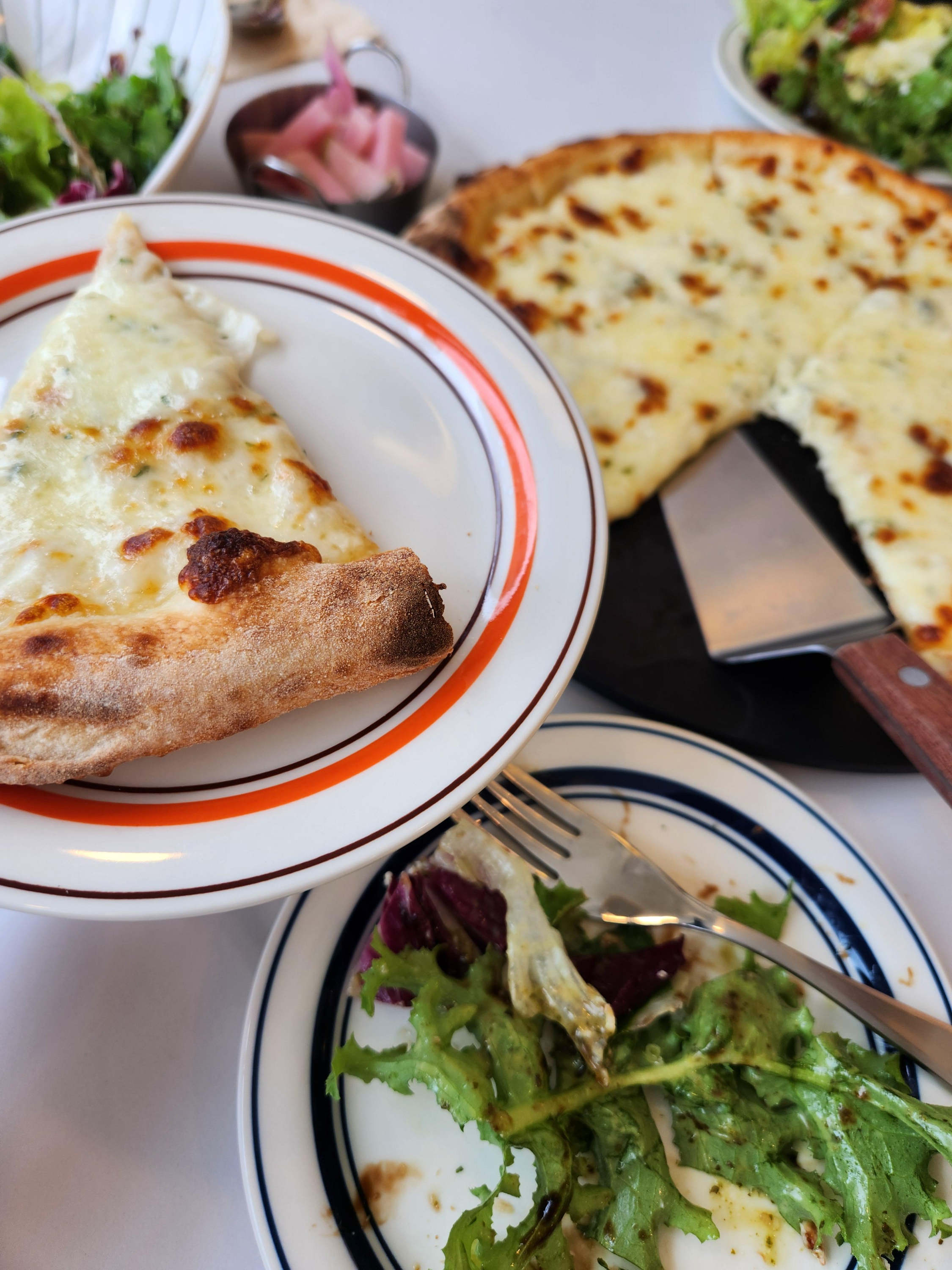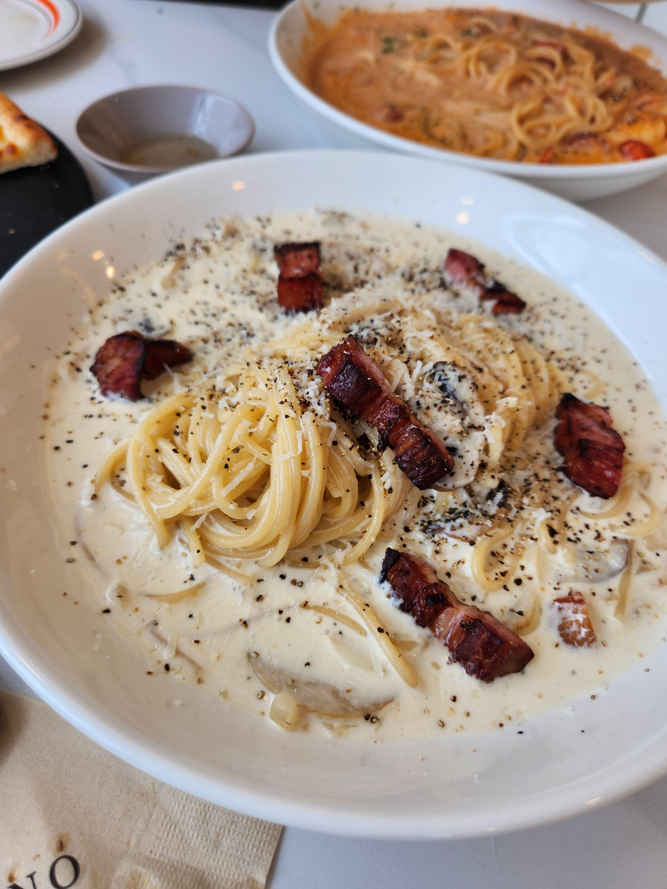 우선 기본 피노 리코타 샐러드주문하고 쉬림프 로제 파스타랑 스모크 베이컨 크림파스타, 그리고 고르곤졸라를 주문했다.