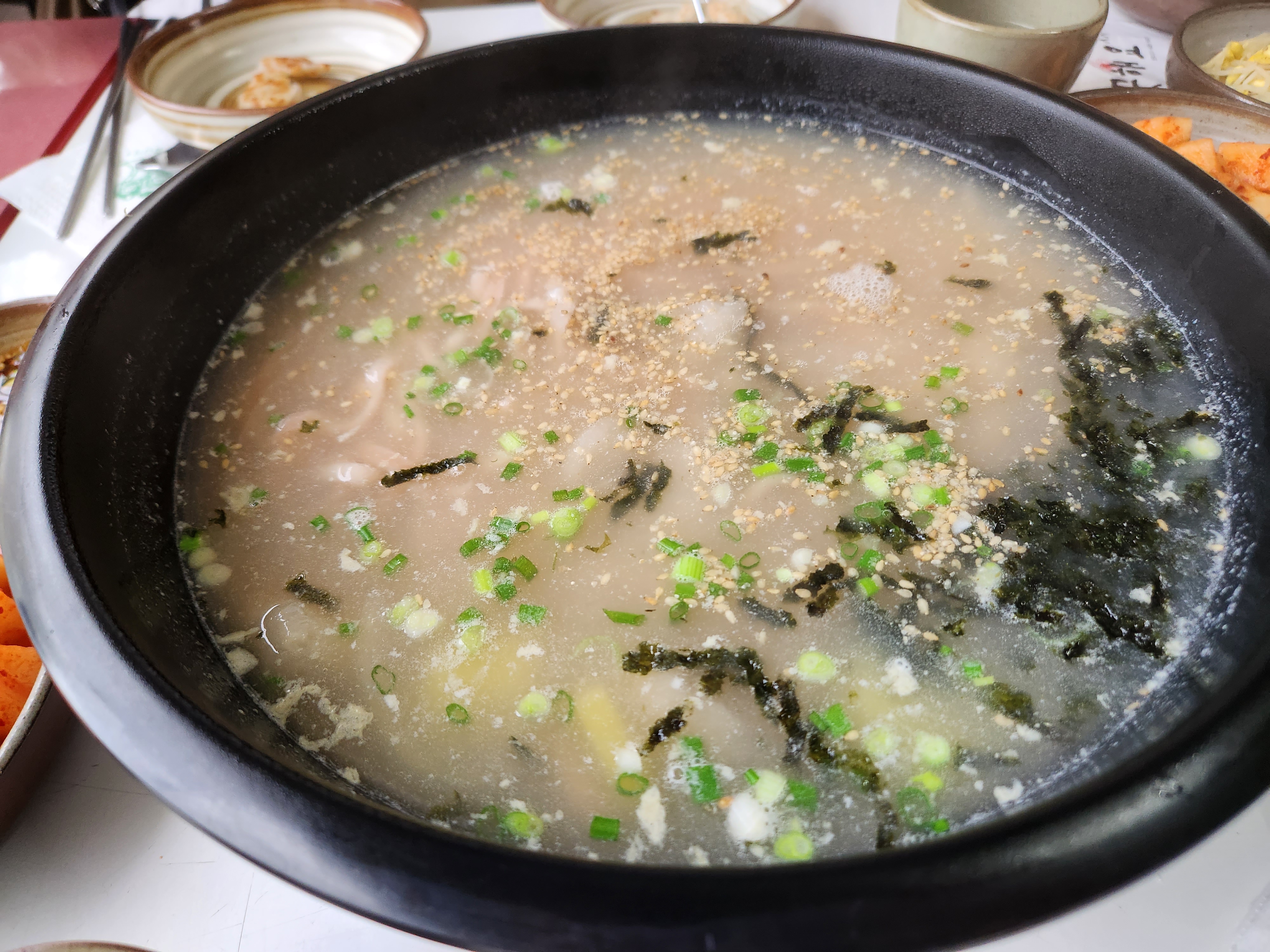 많이 기다렸지만 주문한 옹칼제비도 나오고~!! 옹심이도 같이!!! 기본찬은 콩나물과 감자샐러드 깍두기 나오는데 이것마저 맛있더라구요. 깍두기도 여긴 직접 만드시고!!