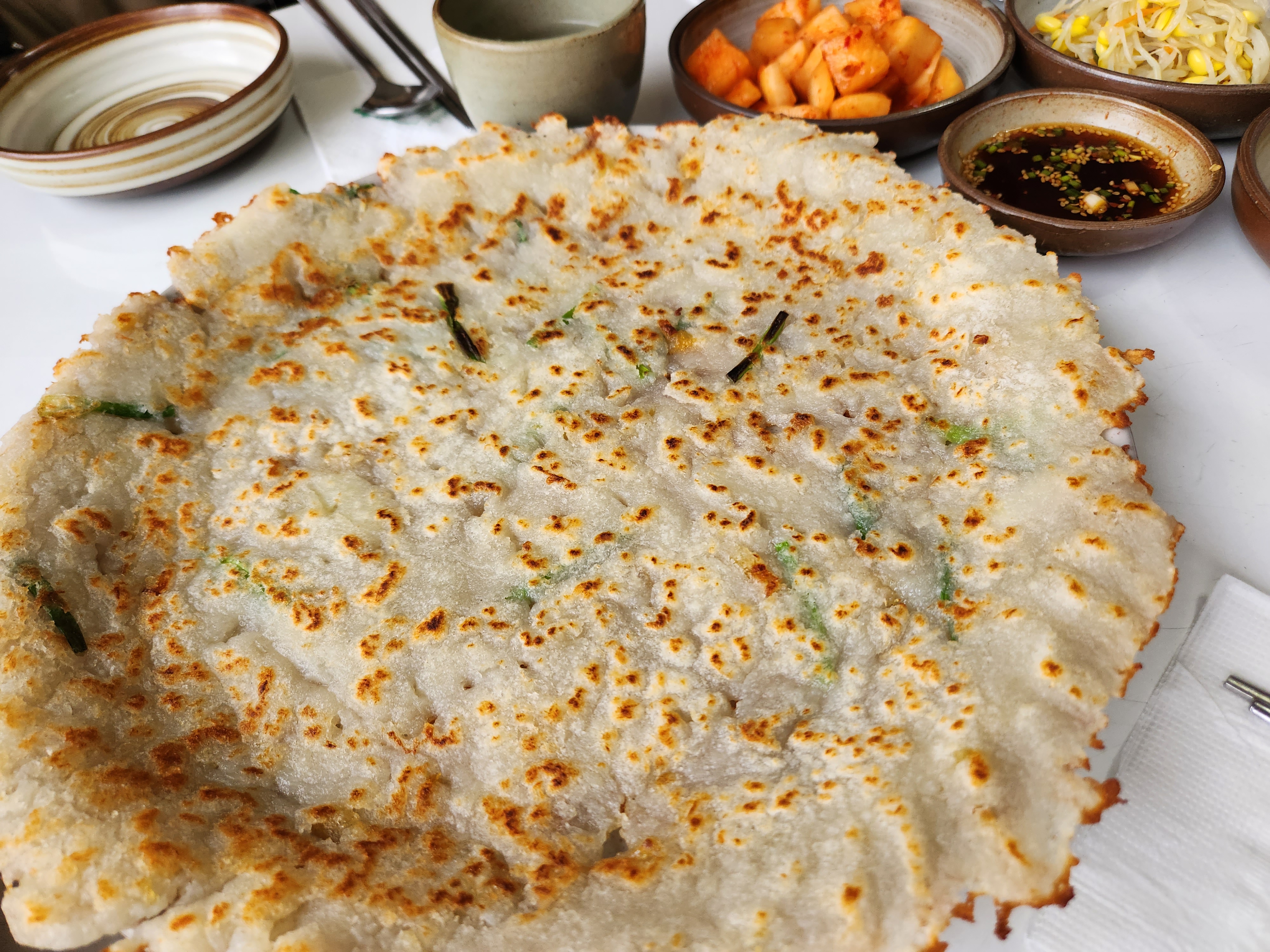 국물도 아주 시원하구요. 옹칼제비 다 먹을즈음~~~ 정말 라지사이즈 피자한판같은 감자전도 나왔어요. 어쩜 이렇게 맛있을까요!!! 쫀득쫀득!! 생감자가 그대로 들어가서 맛이 아주 예술~!! 어린 조카도 맛있다고 잘 먹었어요.