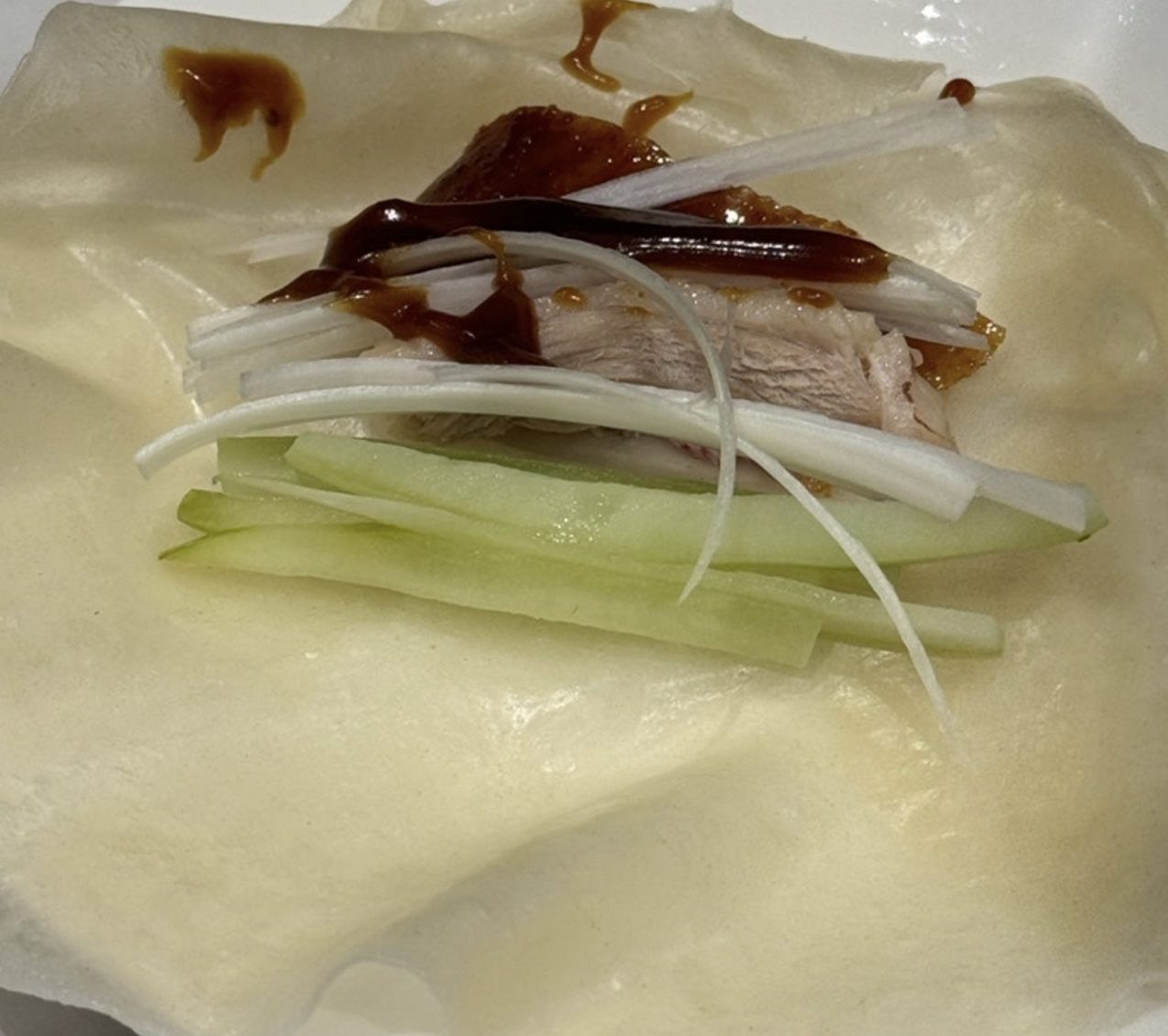월남쌈 싸듯이 밀전병에 오이대파 올린 후 소스 올려 냠~!! 음~ 북경오리 맛집 맞네요. 안먹었음 후회할뻔~