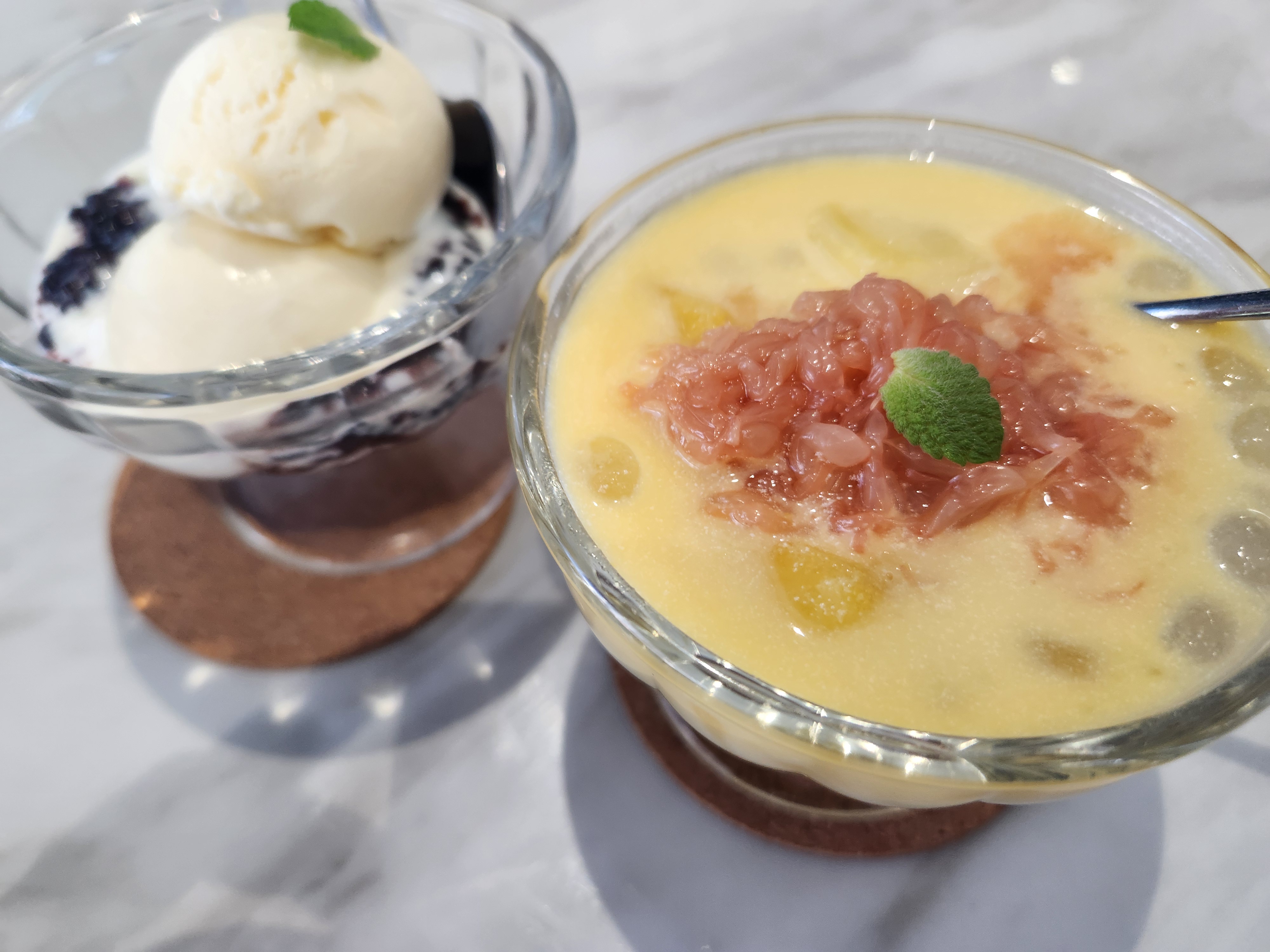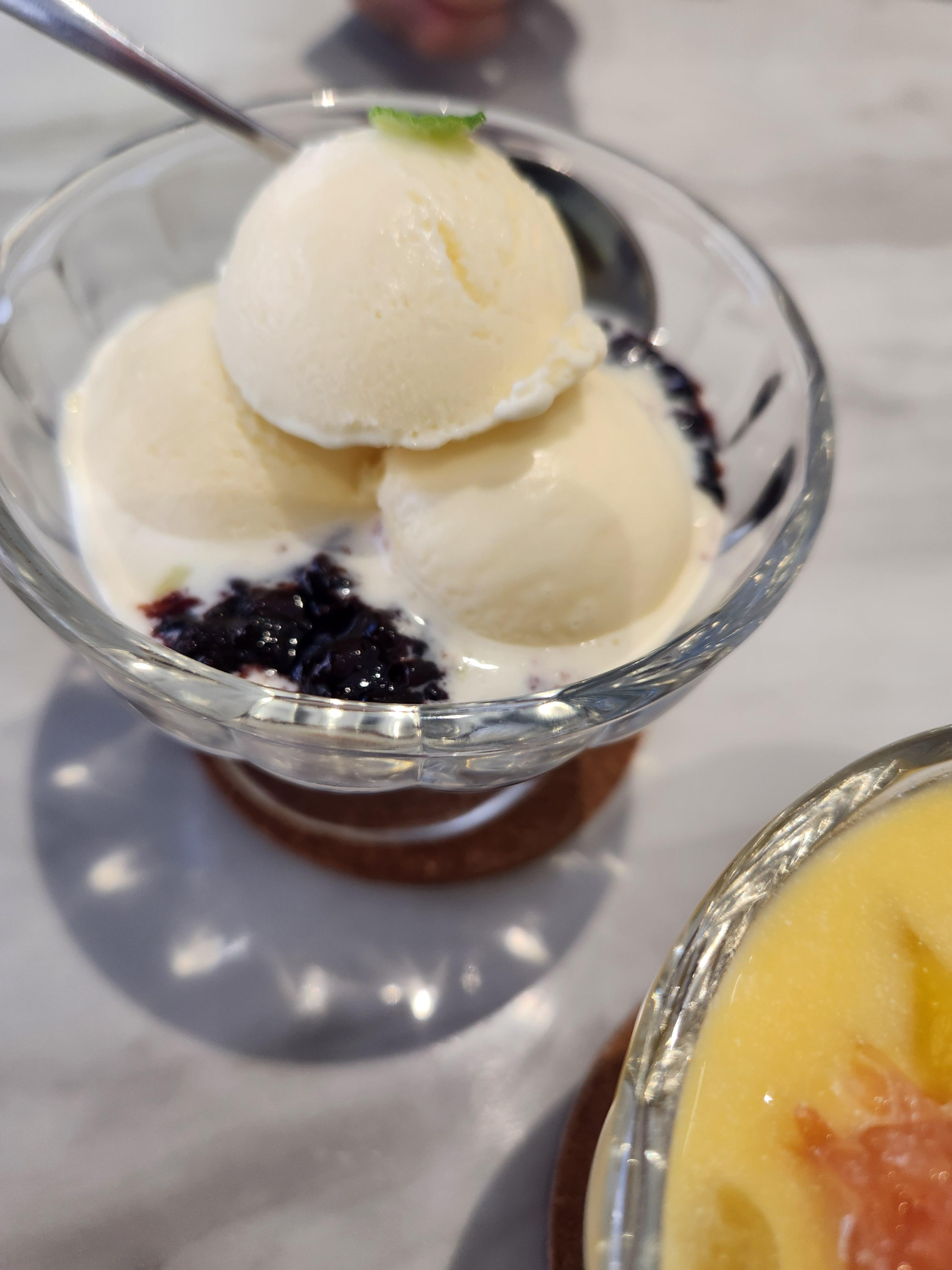 디저트는 망고사고와 흑미바닐라아이스크림을 주문했다.
