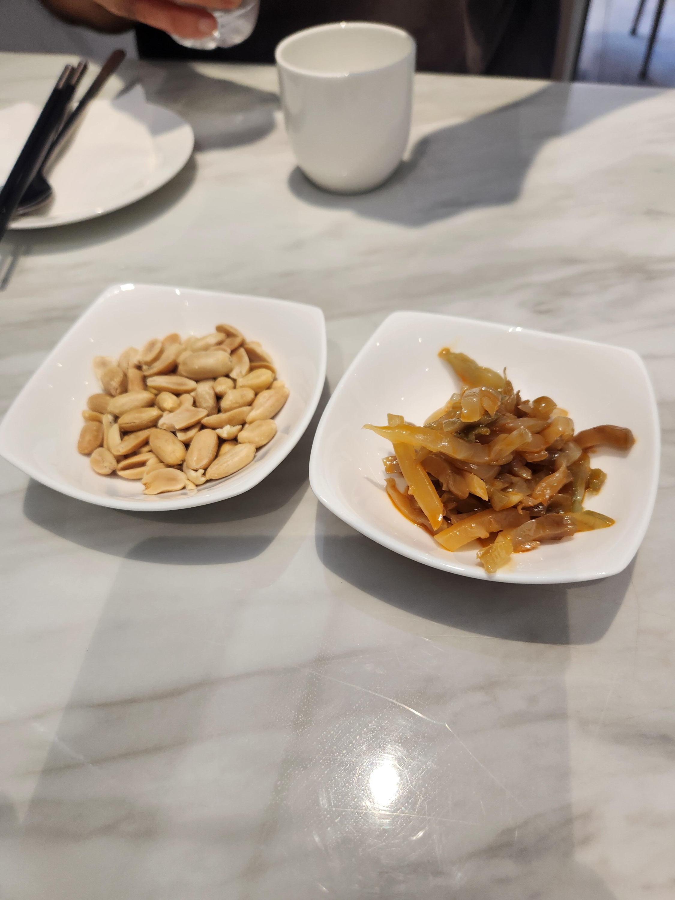 자리에 앉으니 구운 땅콩과 자차이를 내어주셨다.